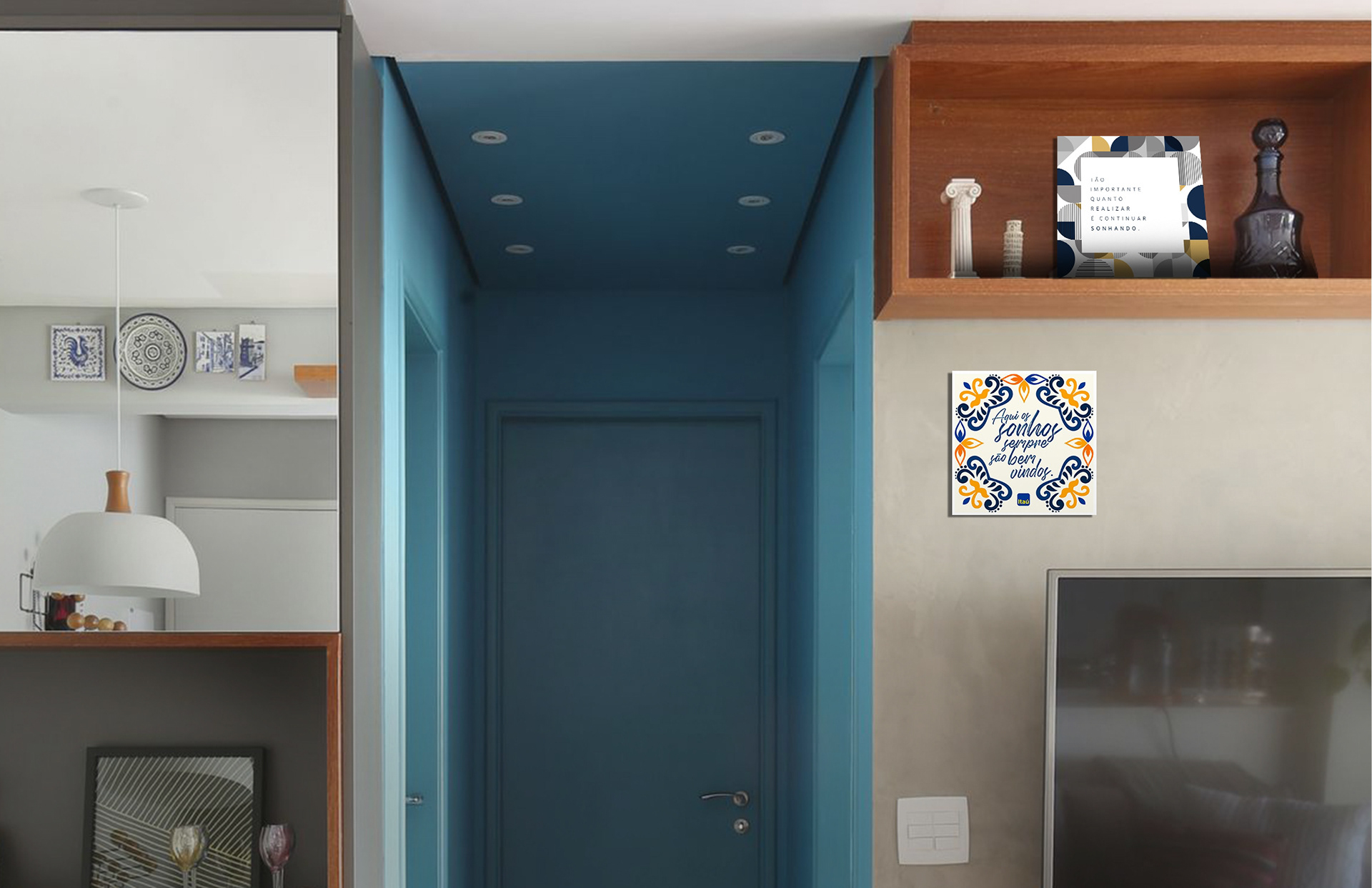 Para marcar a nossa jornada juntos, também enviamos azulejos personalizados para ficarem expostos no imóvel, em uma parede ou estante. Além de incentivar suas próximas conquistas, a ideia foi reforçar que estamos sempre à sua disposição.