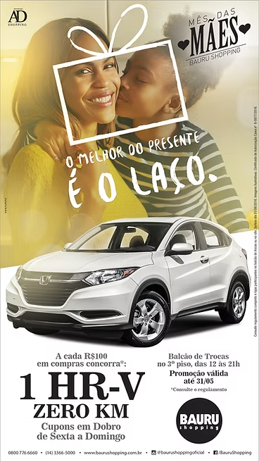 Com o aumento da crise financeira no país, a projeção do Bauru Shopping era de que as vendas de Dia das Mães iriam cair em 2016. Para apoiar os lojistas, criamos uma campanha valorizando o laço afetivo que se faz quando o laço de um presente se desfaz.
