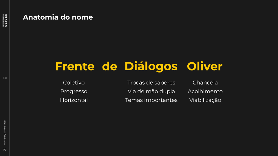 A repercussão foi tão positiva, que a Oliver quis oficializar o grupo. Lideranças executivas entraram para viabilizar as propostas e criamos uma identidade. Fiquei responsável pelo naming: